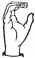 На ћирилици написано ВУКОСАВ НАУПАРАЦ састоји се из 15 слова [?]. Исписано ћириличном једноручном азбуком за глувонеме: